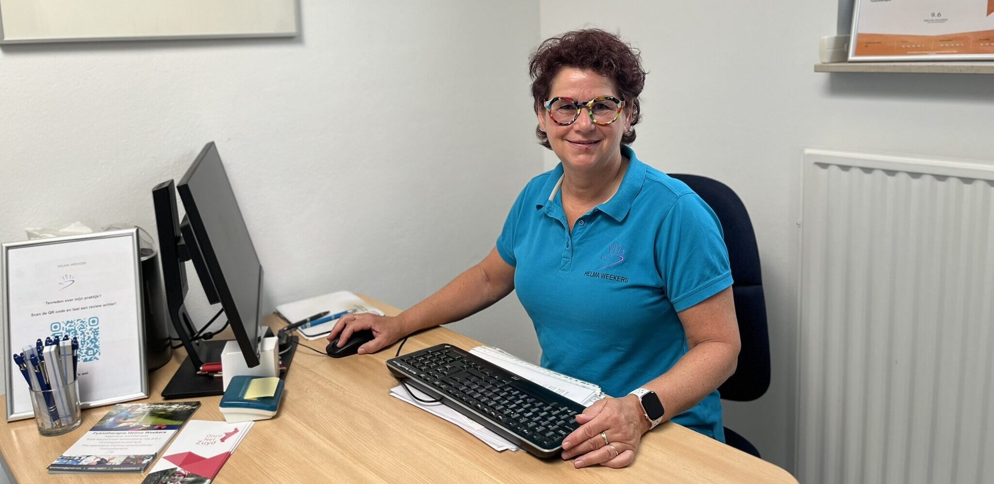 Mijn naam is Helma Weekers en ik ben op 1 februari 1989 afgestudeerd als algemeen fysiotherapeute aan de Academie voor fysiotherapie te Heerlen. Na enkele maanden in verschillende praktijken in Limburg waarnemingen te hebben gedaan kreeg ik uiteindelijk een fulltime baan aangeboden in een fysiotherapiepraktijk in Weert. Na 8 jaar, op 1 oktober 1997, kreeg ik de mogelijkheid om mijn éénmanspraktijk te starten binnen het Gezondheidscentrum Weert. De samenwerking met de verschillende disciplines binnen het Gezondheidscentrum Weert sprak mij enorm aan. Tijdens de koffie of lunchpauze sparren we, ieder vanuit zijn eigen specialisme, regelmatig over aandoeningen waar patiënten mee komen. Vanwege een druk privéleven ben ik, in eerste instantie, part-time gaan werken, maar nu de kinderen hun eigen weg gaan kan ik weer flexibeler zijn in mijn werkdagen.